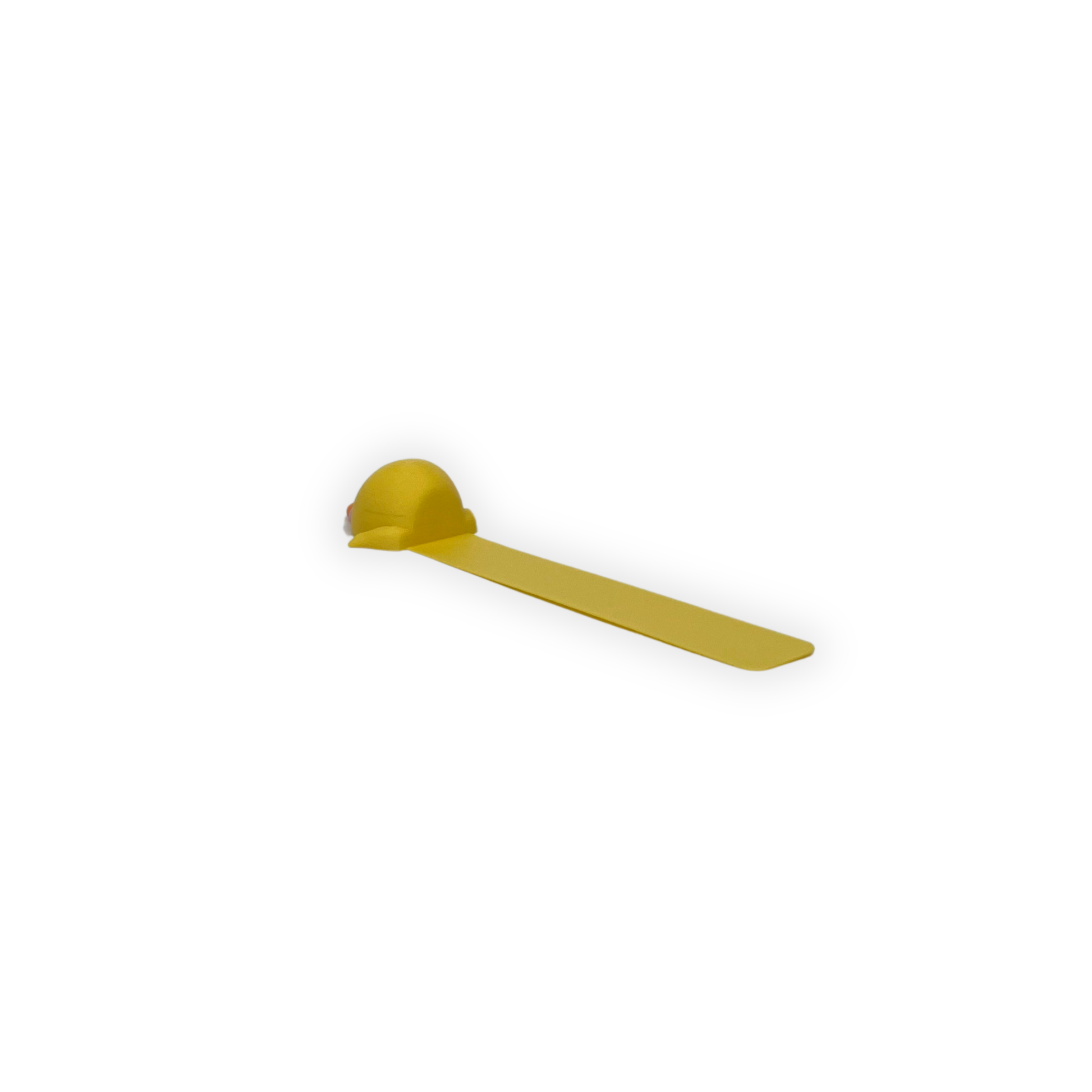 Ankan är 3D-printad i PLA – en lätt, miljövänlig bioplast – och är designad för att sitta stadigt mellan sidorna utan att skada boken. Den gula färgen och de orange detaljerna ger bokmärket en klassisk ankkänsla, medan den kompakta formen gör det lätt att ta med överallt.