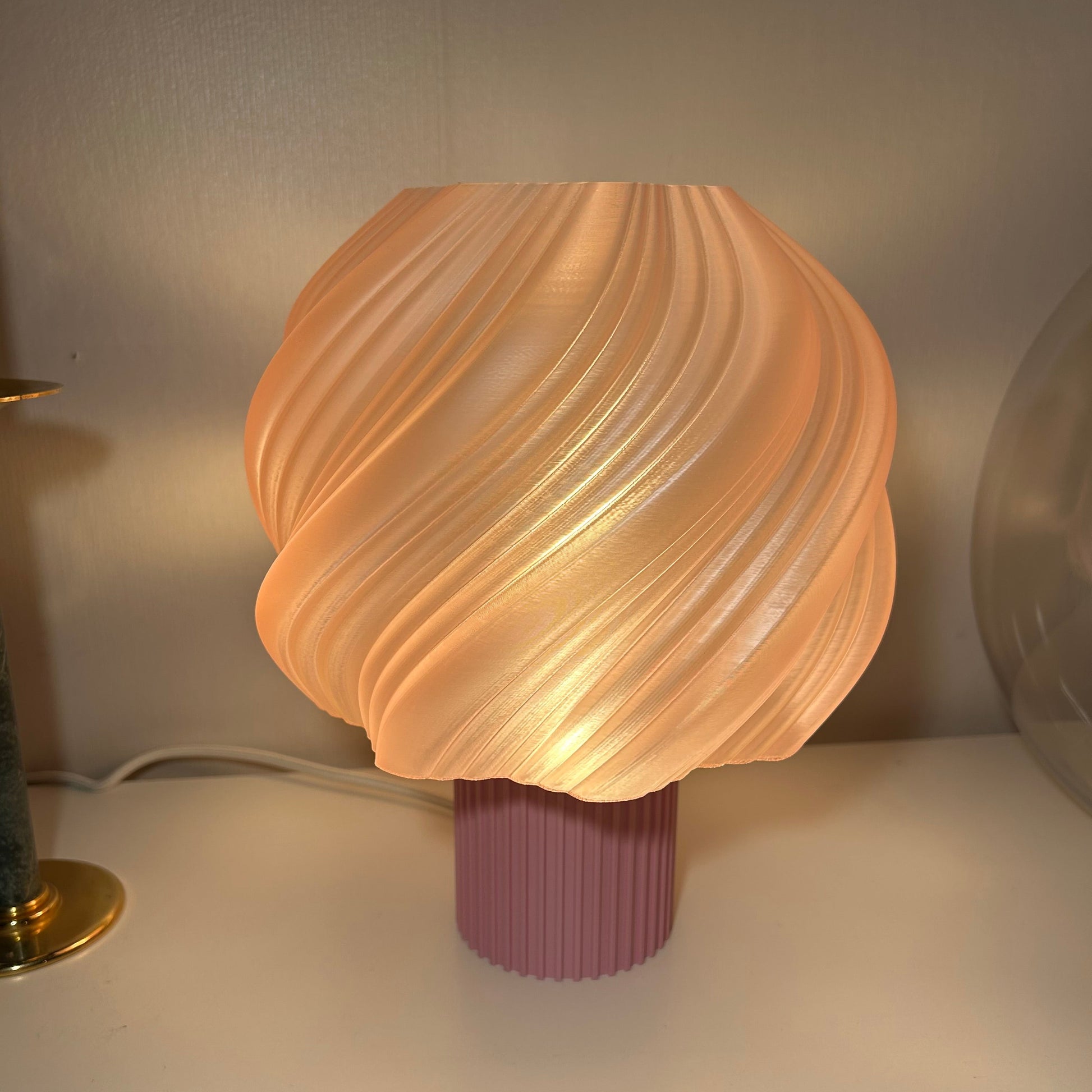 Låt belysningen bli en del av inredningen med denna 3D-printade bordslampa i en mjukt vriden, vågformad design. Den organiska formen ger lampan ett levande uttryck samtidigt som den ribbade strukturen filtrerar ljuset och skapar ett varmt, harmoniskt sken i rummet.